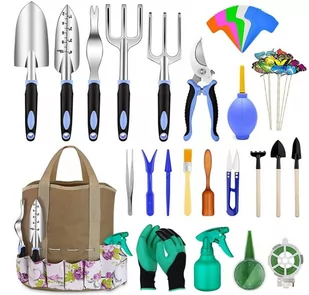 Zestaw narzędzi ogrodowych, 14-częściowy zestaw ze stali nierdzewnej - niebieski