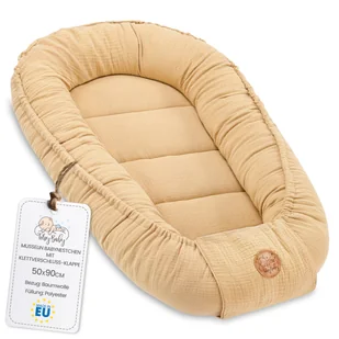 Ciepły muślinowy kokon 90x50 cm - przytulanka kokon niemowlęcy zima/jesień kokon beżowy