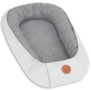 Kokon niemowlęcy - 90x50 cm Gniazdo dla noworodków ręcznie wykonane obustronne z bawełny waflowej Galaktyka jasnoszary