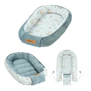 Bezpieczne miejsce od pierwszych dni życia Kokon niemowlęcy Flumi to praktyczne gniazdko przeznaczone dla najmłodszych dzieci od pierwszych dni życia. Produkt powstaje w Polsce i jest szyty ręcznie z materiałów posiadających certyfikat OEKO-TEX Standard 100. Połączenie bawełny i velvetu zapewnia miękką, przyjemną w dotyku powierzchnię, odpowiednią nawet dla delikatnej skóry niemowlęcia. Antyalergiczne wypełnienie sprawia, że kokon jest stabilny, sprężysty i wygodny podczas codziennego odpoczynku. Dwustronna konstrukcja i wygoda użytkowania Dwustronna budowa pozwala zmieniać wygląd gniazdka w zależności od potrzeb.