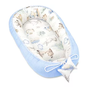 Kokon niemowlęcy - Gniazdo dla noworodków ręcznie wykonane obustronne z bawełny waflowej Jeżyk