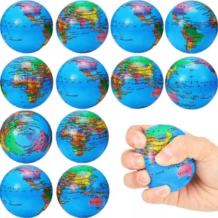 ZESTAW dwunastu PIŁECZEK GLOBUSÓW z nadrukiem KONTYNENTÓW, MÓRZ, OCEANÓW. Ilość w opakowaniu: opakowanie zawiera 12 sztuk ściskanych piłek antystresowych w kształcie kuli ziemskiej, w tym mapy kontynentów na planecie, z długościami i równoleżnikami. Informacje o rozmiarze: każda miniaturowa kula ziemska w kształcie kuli ziemskiej ma około 2,5 cala/6,3 cm średnicy, jest kompaktowa i lekka, łatwa do trzymania, przenośna, wygodna do noszenia w torbie.