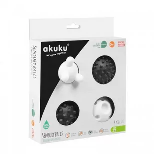 Piłeczki sensoryczne marki Akuku zadbają nie tylko o doskonałą zabawę, ale także prawidłowy rozwój dziecka już od pierwszych chwil życia. Ich unikatowe kształty i struktura doskonale dostarczają wielu wrażeń czuciowych, masują małe rączki i rozluźniają napięcie mięśniowe, dlatego są zabawką polecaną przez fizjoterapeutów. Są cenione w okresie ząbkowania, ponieważ mogą skutecznie złagodzić ból dziąseł poprzez masaż. Ponadto, czarno-białe kolory stymulują wzrok niemowlaka, które w pierwszych miesiącach życia nie rozróżnia barw.