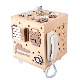Drewniana kostka edukacyjna sensoryczna dla dzieci