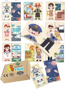 DREWNIANA UKŁADANKA puzzle ZAWODY łamigłówka dla najmłodzych dzieci Viga 18m+ montessori