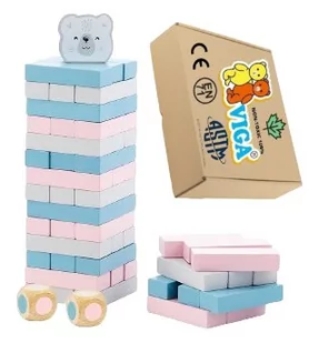 Drewniane Zabawki Gry SENSoryczne WIEŻA Z MIŚKIEM układanka klocki DREWNO Viga 3+ montessori