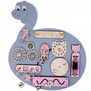 Przedmiotem aukcji jest personalizowana tablica manipulacyjna "DINO" wzorowana na zabawkach szkoły Montessori . Bawiąc się dziecko rozwija zdolności poznawcz...