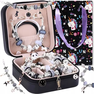 DUŻY ZESTAW DO ROBIENIA BRANSOLETEK I NASZYJNIKÓW CHARMS SZKATUŁKA KORALIKI ⭐KREATYWNY ZESTAW DO TWORZENIA BIŻUTERII BRANSOLETEK + SZLATUŁKA⭐ Przepiękny zestaw koralików i zawieszek który pozwoli samodzielnie zaprojektować wymarzoną biżuterie. Nowa bransoletka, naszyjnik czy wisiorek ? Nic prostszego. Z tym zestawem codziennie stworzysz coś innego, wyjątkowego, by zawsze zachwycać i olśniewać. Zabawa nigdy się nie kończy gdyż każdy z elementów w prosty sposób można zakładać lub zdejmować z dołączonych bransoletek. ⭐Zestaw zapakowany w piękną szkatułkę oraz torebkę prezentową - gotowy prezent dla każdej dziewczynki!⭐ ➡️KLUCZOWE CECHY ZESTAWU: