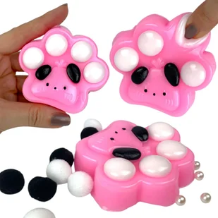 Gniotek Łapka Misiowa Różowa z pomponikami