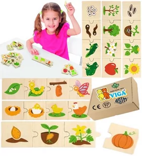 ❤️ Zabawkom Viga zaufało już wielu właścicieli sal zabaw, przedszkoli, szkół, gabinetów terapeutycznych, pomieszczeń z poczekalniami i wielu innych miejsc publicznych w którym pojawiają się dzieci. ❤️ To idealny wybór dla Ciebie i Twojego dziecka, aby zapewnić dziecku zdrową i rozwijającą zabawę. ❤️ A jeśli nie jesteś rodzicem to gwarantujemy, że zabawek Viga kupionych w prezencie dla malucha nie poswtydzisz się przed jego rodzicami. ⚡ Kup teraz ⚡ i podaruj dziecku bezpieczną, przemyślaną i rozwijającą zabawkę ⚡ FAZY ROWOJU ROŚLIN I ZWIERZĄT Zestaw puzzli edukacyjnych wspomoże naukę o roślinach i zwierzątkach. Dziecko układając puzzle zdobywa podstawową wiedzę o otaczającym go świecie, dodatkowo ćwiczy pamięć oraz małą motorykę.