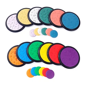 Dotykowe dyski sensoryczneZabawki sensoryczne tego typu zachęcają do rozwoju umiejętności dotykowych i motorycznych poprzez interaktywną zabawę oraz zachęcają dzieci do odkrywania i uczenia się w przyjaznym środowisku. ELEMENTY ZESTAWU: duże dyski sensoryczne - 12 szt. małe dyski sensoryczne - 12 sztSzczegóły produktu: Materiał: tworzywo PP/TPEPrzedział wiekowy: