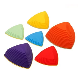 Trójkątne kamienie rzeczne - ścieżka sensorycznaTrójkątne kamienie do balansowania są doskonałą pomocą dla rozwoju sensorycznego i równowagi dzieci. Są odpowiednie dla dzieci w wieku od 2 lat i wspierają ich rozwój motoryczny i koordynację. Dzięki różnym kolorom i rozmiarom zabawkę można dowolnie łączyć, co dodatkowo pobudza wyobraźnię dziecka. ELEMENTY ZESTAWU: Kamienie do balansowaniaCharakterystyka: