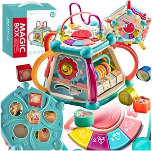 MULTIKOSTKA KOSTKA EDUKACYJNA INTERAKTYWNA DUŻY CENTRUM ZABAWY 7W1 SORTER ❇️Odkryj fascynujący świat dzięki magicznej kostce sensorycznej 7w1! ✔️ Interaktywna kostka edukacyjna 7w1 zaprojektowana została z myślą o najmłodszych! ✔️ Zabawka łączy w sobie aż 7 różnych stref aktywności, które wspierają rozwój dziecka przez zabawę ✔️ Dziecko zaczyna rozpoznawać kształty i kolory, a także rozwijać zdolności manualne i zmysł słuchu! ❇️MULTIFUNKCJONALNA ✔️ 7 funkcji edukacyjnych w jednym produkcie ❇️ŚWIATŁO I DŹWIĘK ✔️ Zabawka z przyjaznymi dla dziecka efektami świetlnymi i dźwiękowymi ❇️NAUKA PRZEZ ZABAWĘ ✔️ Wspiera rozwój motoryki małej i koordynacji oko-ręka ❤️Z MYŚLĄ O NAJMŁODSZYCH ✔️ Wykonana z bezpiecznych materiałów – bez ostrych krawędzi ❇️PRZYCIĄGAJĄCA UWAGĘ ✔️ Zastosowane żywe kolory i ciekawe formy stymulują zmysły dziecka ❇️RÓŻNE TRYBY ZABAWY Tryb organów – każde z 4 klawiszy gra inny dźwięk: „do”, „re”, „mi”, „fa” Tryb piosenek dla dzieci – naciśnij klawisz, a zabawka zagra znane melodie dziecięce przy migających światełkach LED Tryb zwierzątek – po naciśnięciu klawisza słychać odgłosy zwierząt (kot, pies, owca, kaczka) wraz z ich nazwami w języku angielskim ❇️AUTOMATYCZNE WYŁĄCZANIE Po 90 sekundach bezczynności zabawka przechodzi w tryb uśpienia – oszczędza baterię ❇️DUŻY PRZYCISK BĘBNA Aktywuje dźwięki perkusji – aż 8 różnych tonów ⚙️SPECYFIKACJA TECHNICZNA: Marka: Bounn Wymiary opakowania: 24×16,8×25,6 cm Wiek dziecka: 18 miesięcy+ Zasilanie:
