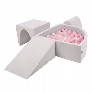 PPZP-TR30D-124-016 KiddyMoon Piankowy plac zabaw PPZP-TR30D-124 z piłeczkami jasnoszary: pudrowy róż-perła-transparent basen 300/klin L/górka/tunel Zabawka plac zabaw