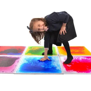 Panele sensoryczne dla dzieci to znakomity dodatek do sal zabaw, przedszkola czy sal doświadczania świata. Wytrzymałe płytki sensoryczne umożliwiają świetną zabawę, a jednocześnie rozwijają integrację sensoryczną i wyobraźnię. Dzieci mogą po nich chodzić, tańczyć i naciskać płytki, które to zmieniają raz po raz swoje wzory. Wewnątrz płytek znajduje się nietoksyczny barwnik, który pod wpływem dotyku zmienia swoje położenie i tym samym zmienia kolorowy wzór. Sensoryczne płytki dotykowe rozwijają ciekawość oraz stanowią interesujący przyrząd do integracji sensorycznej, który pozwala dziecku się wyciszyć.