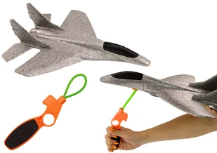 Samolot Myśliwiec Styropianowy Z Procą Wyrzutnia Szary