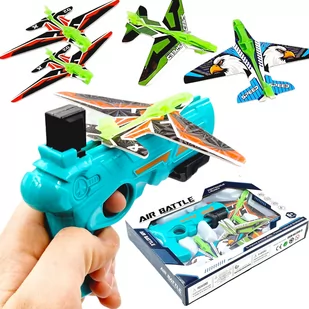 WYRZUTNIA SAMOLOTÓW Z CZTEREMA SAMOLOTAMI PISTOLET NIEBIESKI ZABAWKA