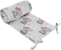 Wzór: Miś dziewczynka na szarym tle Wymiar: Ochraniacz ma wymiary 180x35 cm. Jest on dostosowany do większości standardowych łóżeczek. Ochrona dla dziecka: Ochraniacz chroni dziecko przed uderzeniami, zapewniając mu spokojny i bezpieczny sen.