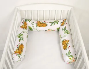 Uniwersalny ochraniacz wałek do łóżeczka dla niemowląt. Sprężysty długi ochraniacz wałek, który łatwo dopasować do dowolnego kształtu. Zwinięty ochraniacz pięknie pasuje do kosza Mojżesza czy łóżeczka niemowlęcego. Ochraniacz wałek położony wyprostowany w większym łóżku, tapczaniku idealnie chroni od chłodu ściany. Piękne drukowane wzory i ciekawe kolory doskonale zdobią pokój dziecka.