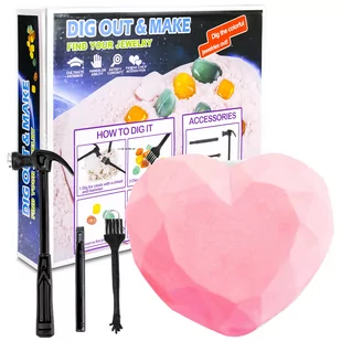 14 x 13 x 3,5 cm ✅Wiek: 6+ ✅CERTYFIKAT: CE ✨ZESTAW ZAWIERA: ✅Trzy narzędzia do kopania: młotek, dłuto, pędzelek ✅Skamieline z ukrytymi wewnątrz kolorowymi kamieniami ✅Kolorowe opakowanie idealne na prezent!