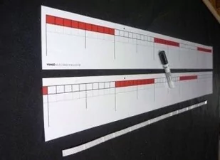 100 cm, którą z łatwością przycinamy nożyczkami lub na deseczce ostrym nożem do żądanych odcinków, które następnie przyklejamy od spodu nakładek plastikowych, dzięki czemu będą one przywierać do tablicy. Opisywanie osi za pomocą markera sucho ścieralnego – jeden w komplecie. Uwaga. Pisać należy na białym polu unikając pisania po nadrukach.