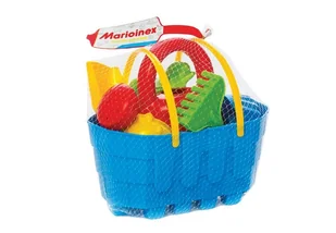 Komplet do piasku POLA 145. Komplet do piasku Pola marki Marioinex to idealny zestaw dla małych miłośników zabaw na świeżym powietrzu W kolorowym koszyczku znajdują się wszystkie niezbędne akcesoria do kreatywnej zabawy w piasku – konewka, łopatka, grabki oraz trzy foremki w różnych. . .