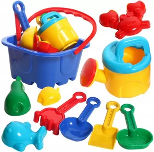 Ilość elementów zestawie: 10 szt Materiał: plastik Waga z opakowaniem: 350 g Wymiary wiaderka: 21 x 21 x 11 cm Foremki: