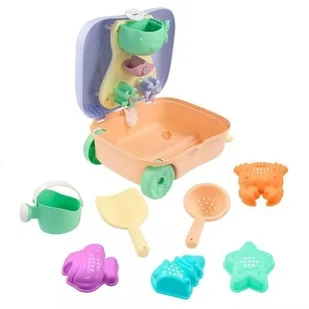 Komplet zabawkowy do piasku, idealny do ogrodu, na plażę lub nad morze. Wykonany z grubego, wytrzymałego plastiku z ochroną UV. Dla większej zabawy, walizka zawiera zintegrowane sito z kołami zębatymi. Walizka na kółkach z uchwytem do ciągnięcia oferuje wystarczająco miejsca na wszystkie akcesoria, dzięki czemu najmłodsi mogą zabrać zestaw wszędzie, gdzie zechcą. Wymiary opakowania: