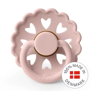 Zapobiega w ten sposób ewentualnym zaczerwienieniom i podrażnieniom skóry a serduszka ułatwią przepływ powietrza. Posiada nowoczesny system click-lock, smoczek został złożony z kilku elementów poprzez kliknięcie, bez użycia siły. W środku posiada element blokujący, który zabezpiecza smoczek przed naprężeniem (np. pociągnięcia). System click-lock gwarantuje większą trwałość i bezpieczeństwo. Smoczek dla niemowlaka Frigg to niezbędny produkt w każdej wyprawce.