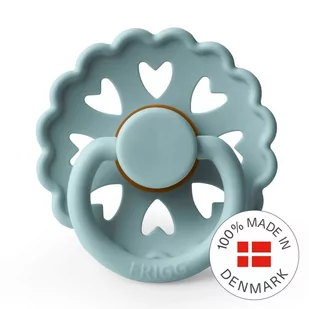 Smoczek pokryty został innowacyjną powłoką Silky-Soft dla jeszcze większej miękkości. Smoczek dla niemowlaka Frigg Fairytale jest inspirowany twórczością duńskiego autora H. C. Andersena. Frigg Fairytale posiada pofalowane krawędzie i serduszka otaczające tarczkę. Przedstawiają jedną z papierowych wycinanek autorstwa H. C. Andersena. Tarcza smoczka została odpowiednio wyprofilowana aby nie dotykała delikatnej skóry dziecka.