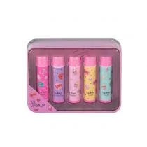 Create it! zestaw balsamów do ust w puszce to słodkie i aromatyczne pomadki do ust w uroczym różowym etui w kropki. Blaszane etui ma dodatkowe miejsce na inne produkty do makijażu, dzięki czemu możesz przechowywać jeszcze więcej przedmiotów. Zestaw zawiera pięć różnych balsamów do ust: różowy. . .