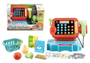 Kasa sklepowa z kalkulatorem i akcesoriami. Zabawka. Interaktywna kasa sklepowa z akcesoriami W zestawie koszyk, produkty spożywcze, banknoty i monety do zabawy Kasa wydaje dźwięki i świeci kolorowym światełkiem Zabawka działa na baterie typu Aa Baterie nie są załączone do zabawki Całość zapakowana. . .