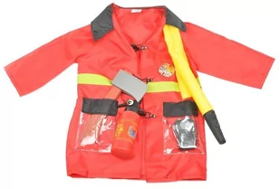 strój małego strażaka (wymiary: 60x35 cm) imitacje sprzętów strażackich - siekiery i gaśnicy walkie-talkie (do uruchomienia potrzebne są 2 baterie AA - nie dołączone do zestawu) oryginalne opakowanie