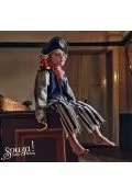 Kostium pirat Duncan holenderskiej marki Souza! to przepiękne, kunsztownie wykonane przebranie, które składa się z długich spodni w biało-czarne paski ze strzępionymi nogawkami i gumką w pasie oraz granatowo-szarej kurtki ze złotymi detalami i papugą na prawym ramieniu. W komplecie jest. . .