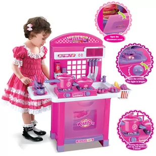 Twoje dziecko lubi naśladować Cię w kuchni? Ta zabawka jest zatem stworzona dla niego. Wymiary kuchni zostały dopasowane pod dziecięcy wzrost, by zapewnić maluchowi komfort i wygodę podczas zabawy. Zestaw zawiera piekarnik do zabawy z realistycznymi dźwiękami i światłami,zlew, mini naczynia oraz różne artykuły spożywcze i napoje. Wnętrze piekarnika może służyć do przechowywania, gdy nie jest używane Świetny sposób dla dzieci na odgrywanie ról samodzielnie lub z przyjaciółmi. Pomaga zachęcać do interakcji, wyobraźni i umiejętności poznawczych w zabawny sposób.
