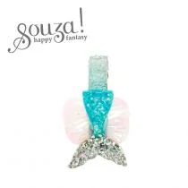 Spinka do włosów z ogonem syrenki Rinette holenderskiej marki Souza! Trójwymiarowa aplikacja ogona wykonana została z turkusowej żywicy, ma płetwę pokrytą holograficznym brokatowem i boczne jasnoróżowe transparentne detale. Metalowe zapięcie zdobi tkanina z jasnoniebieskim brokatem. Ząbkowany. . .