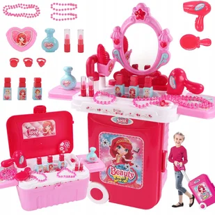 Wysoka symulacja zabawy, zestaw wyposażony w różne akcesoria i wbudowane lustro, wygodne w użyciu. Zestaw jest wygodny do przenoszenia i przechowywania. Toaletka wydaje dźwięki oraz świeci się lampka w kształcie gwiazdki na górze lusterka. ✅Zawartość opakowania: 1 x walizka 3 x pierścionki 2 x szminki 3 x lakier do paznokci 2 x bransoletka 1 x szczotka 1 x lustro 1 x naszyjnik 1 x suszarka do włosów 1 x perfum ✅Skrzynka wyposażona jest w wysuwany uchwyt oraz kółka, dzięki czemu można ją ciągnąć.