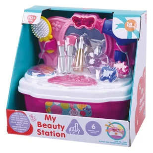 Po naciśnięciu przycisku motyla nad częścią stołu z lustrem można usłyszeć różne dźwięki i melodie. W momencie ich odtwarzania zapala się lub miga albo przycisk w kształcie motyla, albo cztery czerwone małe lampki ukryte za lustrem. Z przodu stołu toaletowego znajduje się również schowek z pokrywką ozdobioną kwiatowym wzorem w reliefie. Zestaw zawiera dwie różne spinki do włosów, mini suszarkę do włosów, grzebień, plastikowe zabawkowe kosmetyki i pędzelki, a także dwie buteleczki perfum. Polecany od półtora roku.