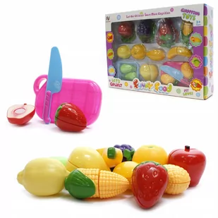 W zestawie warzywa i owoce oraz akcesoria: ociekacz kuchenny, deska do krojenia, nóż oraz cztery talerzyki. Wymiary opakowania: 28 x 9 x 30cm.