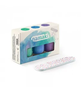 Zestaw 3 lakierów do paznokci na bazie wody, Turkus karaibski, Elektryzujący Błękit, Fioletowy Brokat, łatwe do usunięcia, 7,5ml, Namaki Lakiery do paznokci na bazie wody specjalnie zaprojektowane dla dzieci! Mogą być bezpiecznie stosowane przez Małe Księżniczki. Łatwe w użyciu, szybko schną. Usuwa się je jak naklejka. Do zestawu dołączony jest pilnik do paznokci. Nie zawierają:
