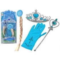 Zestaw Akcesoriów Małej Księżniczki Różdżka Rękawiczka Korona Królowa Śniegu Na początek mamy piękną spinkę z długimi warkoczem, który doda uroku i elegancji każdej fryzurze. Niebieską rękawiczkę zdobioną niebieskim brokatem, która dodaje niezwykłego blasku i sprawi, że Twoja mała księżniczka. . .