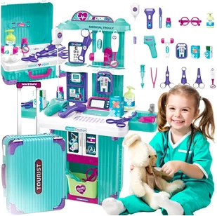 ZESTAW LEKARSKI DLA DZIECI 2w1 WALIZKA 24EL EDUKACYJNY GABINET DOKTOR LEKARZ ⭐Zestaw lekarski dla dzieci „Hello Doctor” – 2w1 walizka i wózek medyczny Zamień zabawę w prawdziwą przygodę lekarską! ✔️Zestaw „Hello Doctor” to idealny wybór dla dzieci, które marzą o zostaniu lekarzem lub pielęgniarką. ✔️Ten bogato wyposażony zestaw 2w1 może pełnić funkcję mobilnego gabinetu lekarskiego lub poręcznej walizki na kółkach, którą dziecko może zabrać wszędzie. ⭐CECHY PRODUKTU: 2w1 – funkcja wózka medycznego i walizki podróżnej Bogaty zestaw akcesoriów lekarskich – ponad 20 elementów Elementy interaktywne – dźwięk i światło w wybranych akcesoriach Łatwa w przenoszeniu – walizka z wysuwaną rączką i kółkami Bezpieczne materiały – zaokrąglone krawędzie, tworzywo bezpieczne dla dzieci Edukacyjna zabawa – rozwija empatię, kreatywność i zdolności społeczne ⭐ZAWARTOŚĆ ZESTAWU: Walizka 2w1 z wysuwaną rączką Termometr z efektem świetlnym Stetoskop Strzykawka Młotek neurologiczny Nożyczki (x3) Pęseta Płyn dezynfekujący (imitacja) Otoskop Okulary Pudełeczko na "leki" Monitor EKG (imitacja) Zestaw naklejek Akcesoria dodatkowe (np. kroplówka, recepty, plansza do badania wzroku) ⚙️ SPECYFIKACJA TECHNICZNA:
