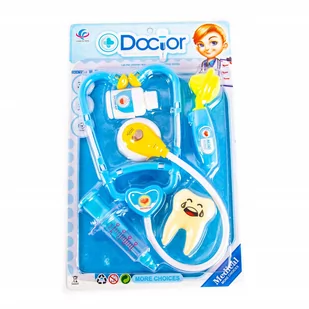 ZESTAW MAŁEGO DOKTORA Wyposażenie małego lekarza to rewelacyjny zestaw dla każdego dziecka lubiącego odgrywać różnorakie role. Dzięki przyrządom lekarza zawartym w tej walizce dziecko będzie mogło urządzić swój własny pokój lekarza, do którego będą mogły przyjść na wizytę wszystkie chore zabawki. Niektóre przyrządy lekarskie działają na baterie - świecą oraz wydają dźwięki. Baterie w zestawie. Wymiary opakowania: