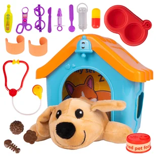 - Mały weterynarz - zabawa, która uczy troski Zestaw 19 elementów pozwala dzieciom wcielić się w rolę lekarza zwierząt, leczyć, karmić i opiekować się pluszowym pieskiem.