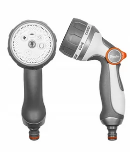 • Metalowy • Posiada ergonomiczny i wygodny uchwyt • 7 funkcji : center, mist, cone, jet, flat, shower, soaker • Niezawodny sposób zamykania i otwierania przepływu wody SMOOTH CONTROL • Zakończony nyplem do szybkozłącza • Rodzaj opakowania: karta