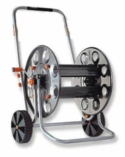 zestaw metalowego wózka na wąż claber® z instrukcją montażu, 2 uniwersalne złączki 1/2" - 5/8" - 3/4"Należy pamiętać, że ilustracje produktu mogą różnić się od dostarczonego produktu, ale są absolutnie identyczne pod względem funkcji i jakości. 8000625088959 Metalowy bęben na wąż Profy - Wytrzymały metalowy wózek na wąż z płynnie obracającym się bębnem - Powłoka z żywicy epoksydowej chroni przed rdzą - Duży przepływ wody i podwójne wyposażenie ze złączami do węży o dowolnej średnicy - 4 gumowe koła zapewniają płynną pracę przy pełnym obciążeniu - Pojemność węża: do 165 metrów węża 1/2", 75 metrów węża 3/4"