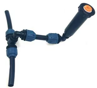 Połączenie zraszacza 1/2" rurą 16 mm do rury 20 mm Kompletne połączenie zraszacza małego i średniego zasięgu (1/2") z rurociągiem głównym W zestawie 3 m rury 16 mm kolanka i trójnik