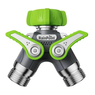 Dwuwyjściowy rozdzielacz RainPoint, wykonany w całości z metalu, to solidne narzędzie do efektywnego rozdzielania strumienia wody na dwa niezależne kierunki.