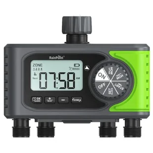 Sterownik nawadniania RAINPOINT ITV405 to funkcjonalne urządzenie umożliwiające kontrolę czterech niezależnych stref nawadniania z jednego źródła wody. Każda strefa działa jak osobny programator, co pozwala tworzyć zróżnicowane harmonogramy podlewania dostosowane do różnych roślin i części ogrodu. Wyposażony w czytelny wyświetlacz LCD i intuicyjne pokrętło, zapewnia prostą konfigurację oraz szybki dostęp do wszystkich funkcji.