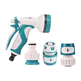 Pistolet do zraszania ogrodu GOLDGARDEN z 10 różnymi funkcjami podlewania to praktyczne rozwiązanie do każdego ogrodu. W zestawie z pistoletem w kolorze turkusowo-białym znajduje się przyłącze kranowe z przejściówką 1/2-3/4”, szybkozłącze 1/2” oraz szybkozłącze 3/4”.